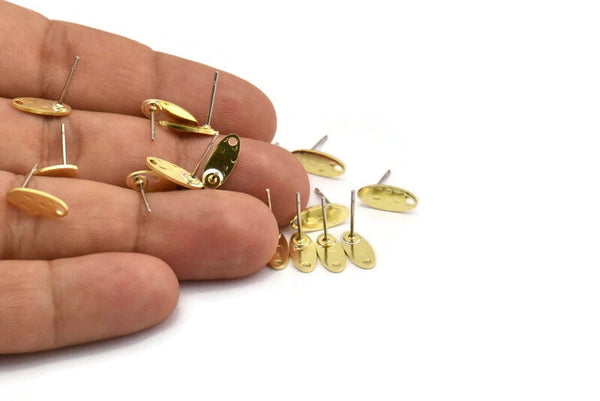 Brass Oval Earring, 12 Raw Brass, Hammered Brass Stud Earrings With 1 Hole (12x5x0.80mm) M02806 A5803