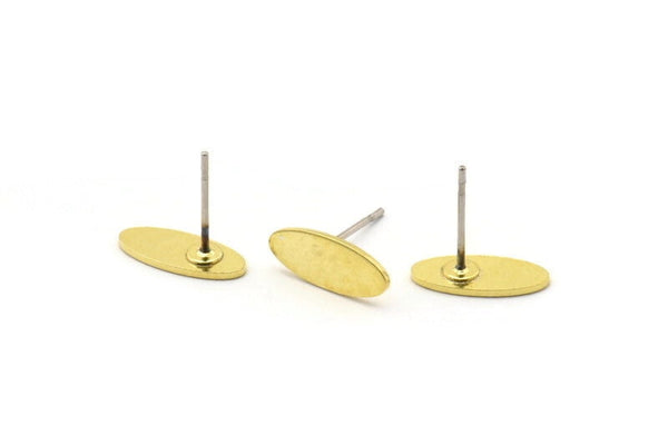 Brass Oval Earring, 12 Raw Brass Oval Shaped Stud Earrings (12x5x0.80mm) M01999 A2512