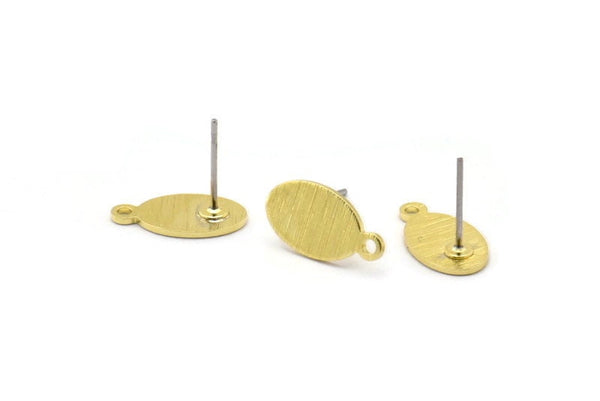Brass Oval Earring, 12 Textured Raw Brass Oval Stud Earrings With 1 Loop (14x8x0.80mm) M02574 A0125