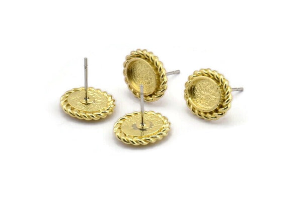 Brass Oval Earring, 4 Raw Brass Oval Earring Studs - Pad Size 6x8mm (11x13mm) N2080