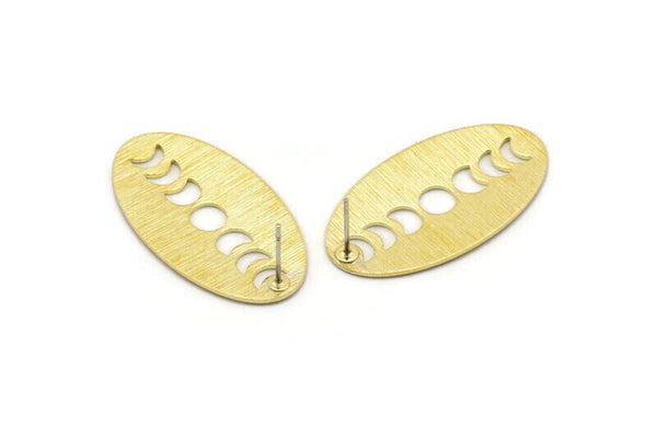 Brass Oval Earring, 4 Textured Raw Brass Oval Moon Phases Shaped Stud Earrings (35x19x0.80mm) M02190 A2531