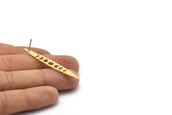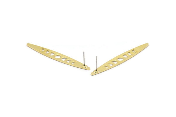 Brass Oval Earring, 6 Raw Brass Oval Moon Phases Shaped Stud Earrings (50x7x0.80mm) M02496 A0023