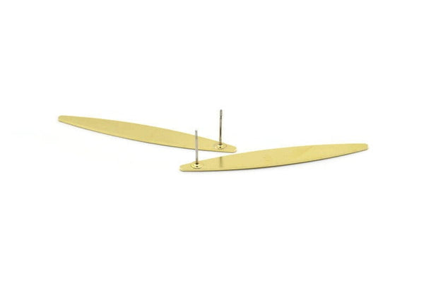 Brass Oval Earring, 6 Raw Brass Oval Shaped Stud Earrings (50x7x0.80mm) M02520 A0867