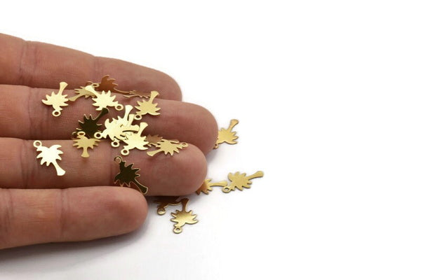 Brass Palm Charm, 100 Raw Brass Palm Tree Charms With 1 Loop, Pendants, Earrings (15x9x0.40mm) B0133