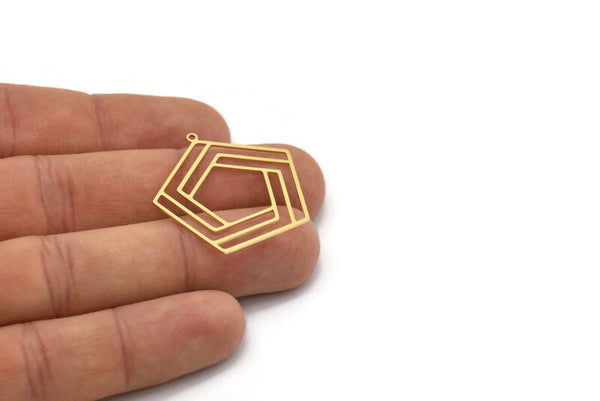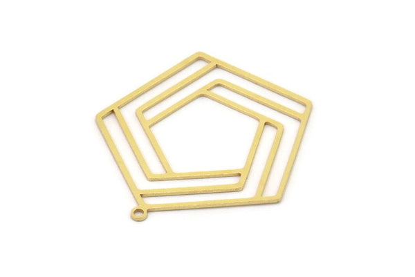 Brass Pentagon Charm, 4 Raw Brass Pentagon Shaped Charms With 1 Loop, Earring Findings, Geometric Charms (32x32x0.60mm) SMP0919