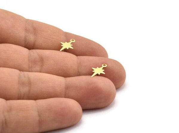 Brass Pole Star Earring, 12 Raw Brass, Brass Earrings, Brass Pole Star Stud Earrings With 1 Loop (13x8x0.40mm) A0819 A6667