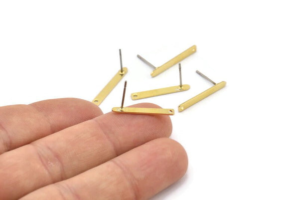Brass Rectangle Earring, 12 Raw Brass Stick Stud Earrings With 1 Hole (20x2.5x0.7mm) M03350 A2864