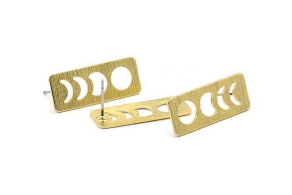 Brass Rectangle Earring, 6 Textured Raw Brass Moon Phases Stud Earrings (25x10x0.80mm) M01990 A2502
