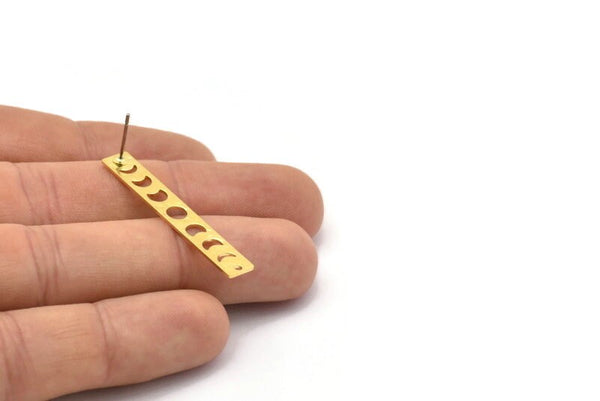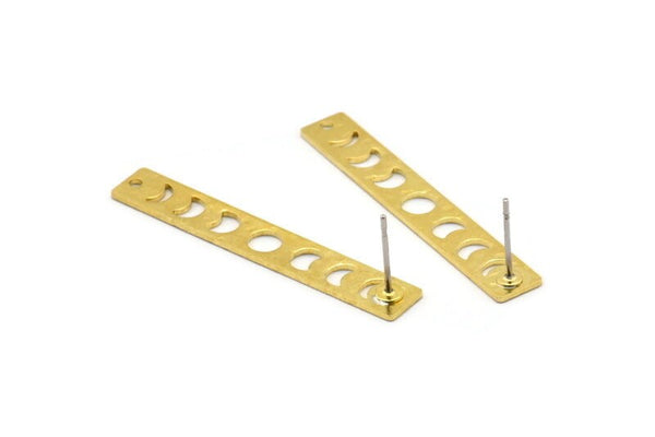 Brass Rectangle Earring, 8 Hammered Raw Brass Moon Phases Stud Earrings With 1 Hole (40x6x0.80mm) M01514 A2457