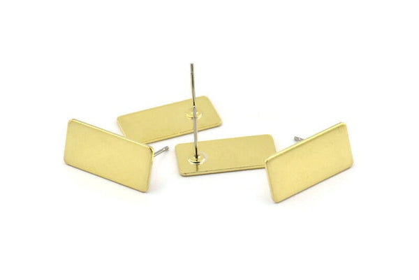 Brass Rectangle Earring, 8 Raw Brass Rectangle Stud Earrings (19x9.25x0.80mm) Y012 A1809