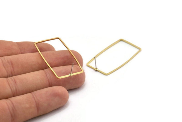 Brass Rectangle Earring, 8 Raw Brass Rectangle Stud Earrings (20x40x1mm) D0332 A5752