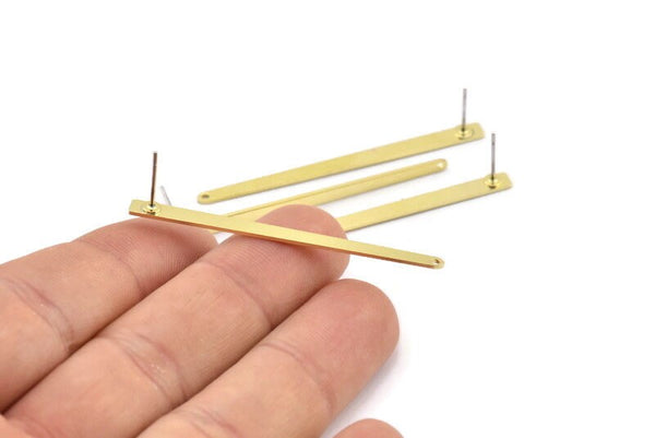 Brass Rectangle Earring, 8 Raw Brass Stick Stud Earrings With 1 Hole (50x3x2.5x0.8mm) M03349 A2865