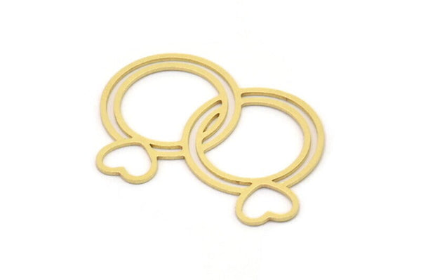 Brass Ring Charm, 4 Raw Brass Double Rings Charms, Couple Ring Charms, Heart Findings (24x33x0.60mm) SMP0924