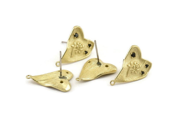 Raw Brass Rose Motif Stud Earrings