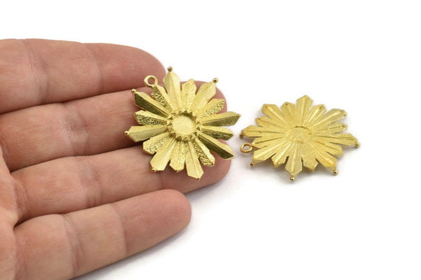 Brass Rosette Charm, Raw Brass Badge Charm Pendants With 1 Loop, Earrings - Pad Size 6mm (33x35mm) N0744