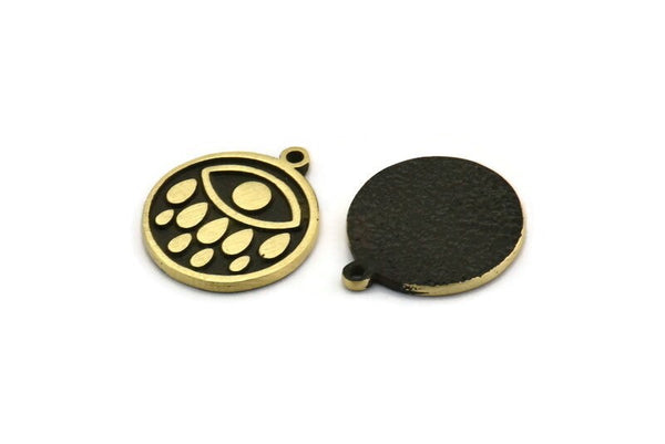 Brass Round Charm, 2 Raw Brass Round Charms With 1 Loop, Eye Findings, Brass Teardrop Findings (19x17x1.5mm) N2381
