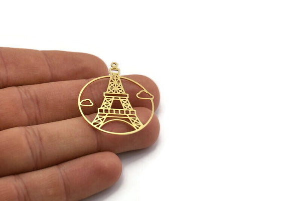 Brass Round Charm, 4 Raw Brass Eiffel Tower Charms With 1 Loop, Earrings, Findings (39x31x0.60mm) A6705