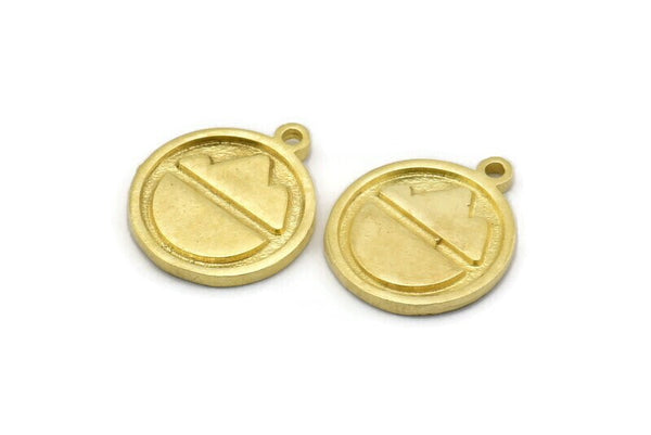 Raw Brass Mountain Shaped Round Charms With 1 Loop