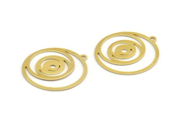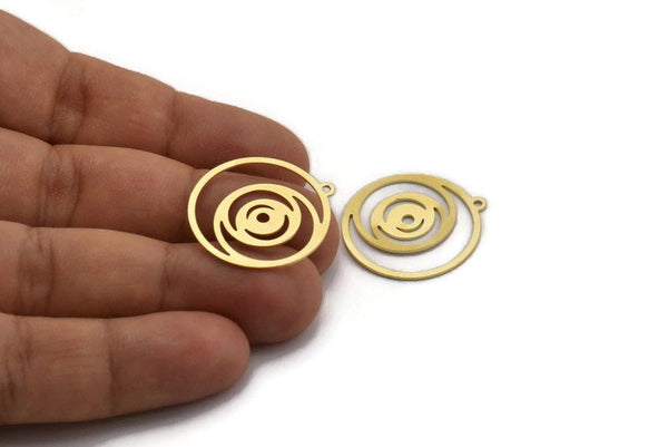 Brass Round Charm, 8 Raw Brass Crescent Moon Patterned Round Shaped Charms With 1 Loop, Earring Findings (26x24x0.60mm) A5937