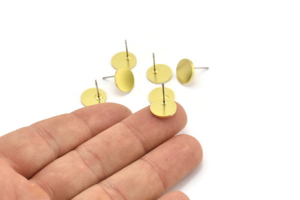 Brass Round Earring, 10 Raw Brass Round Stud Earrings (10x1mm) A4129