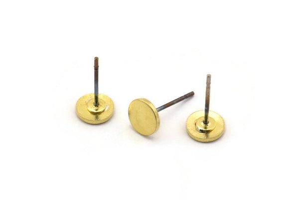 Brass Round Earring, 12 Raw Brass Round Earring Studs (6x0.80mm) M01875 A2493