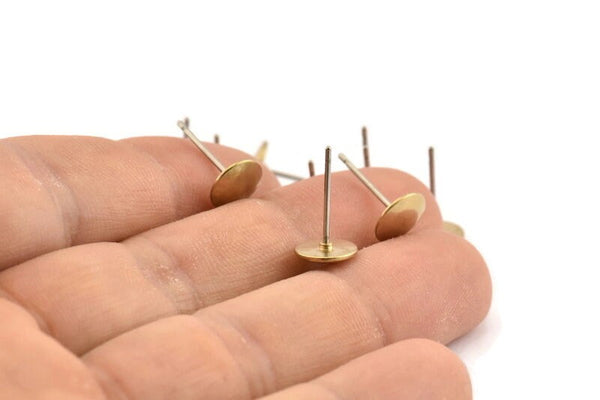 Brass Round Earring, 12 Raw Brass Round Stud Earrings (8mm) D1463
