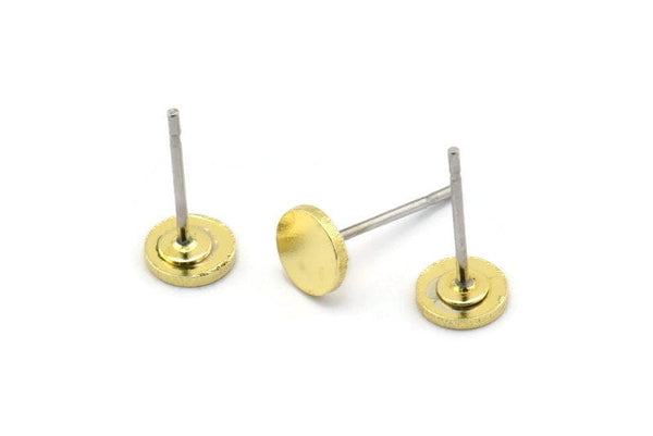 Brass Round Earring, 12 Raw Brass Tiny Round Shaped Stud Earrings (5x0.80mm) A2683