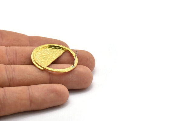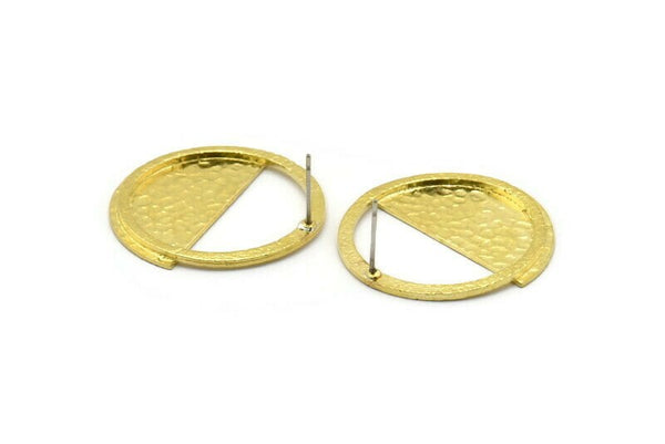Brass Round Earring, 2 Raw Brass Semi Circle Stud Earrings (31x30mm) N0527