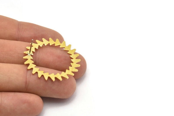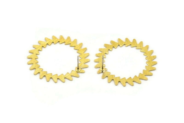Brass Round Earring, 2 Textured Raw Brass Circle Stud Earrings (34x0.80mm) M02132 A2530