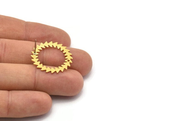 Textured Raw Brass Circle Stud Earrings With 1 Hole