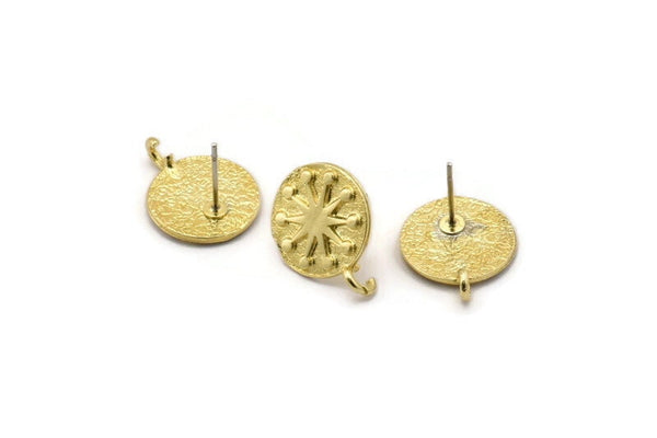 Brass Round Earring, 4 Raw Brass Star Shaped Round Stud Earrings With 1 Loop (17x13x1.5mm) N1859