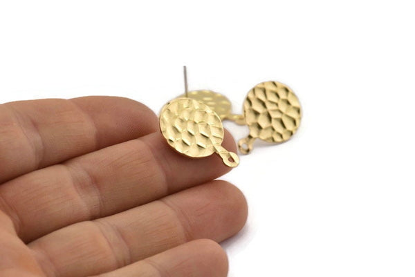 Brass Round Earring, 6 Hammered Raw Brass Round Stud Earrings With 1 Loop (23x17x1.2mm) M493 A2080