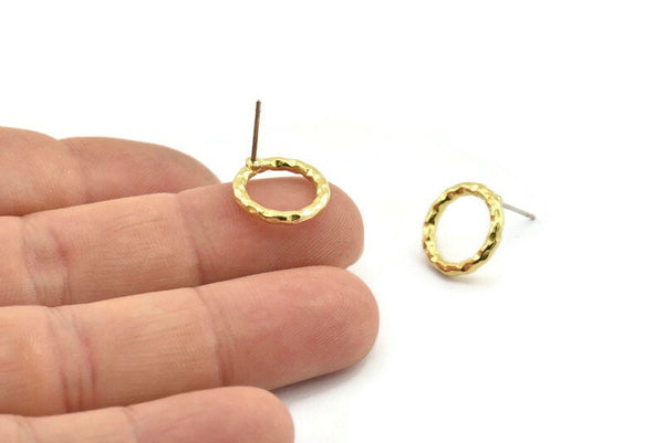 Brass Round Earring, 6 Raw Brass Circle Stud Earrings (14x2mm) N2431