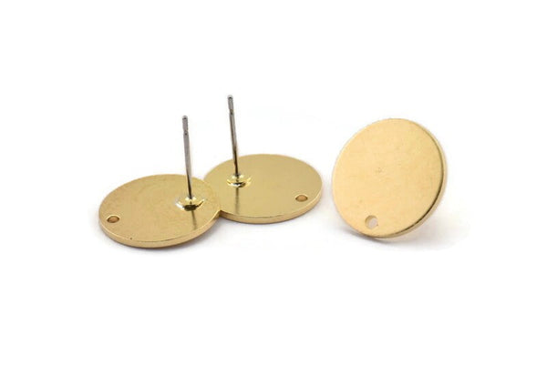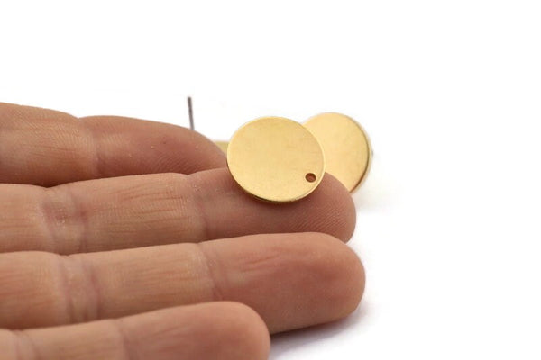 Brass Round Earring, 6 Raw Brass Round Stud Earrings With 1 Hole (15x1mm) BS 2061 A2044