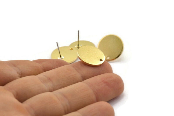 Brass Round Earring, 6 Raw Brass Round Stud Earrings With 1 Hole (16x1.2mm) D1394 A2025