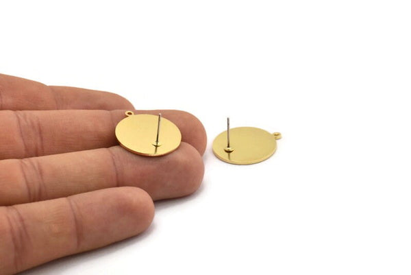 Brass Round Earring, 6 Raw Brass Round Stud Earrings With 1 Loop (22.5x20x1mm) E048 A3890