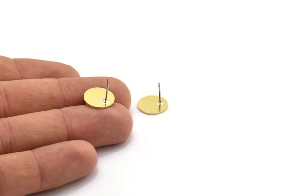 Brass Round Earring, 8 Raw Brass Round Shaped Stud Earrings (12x0.80mm) A5472 A6580