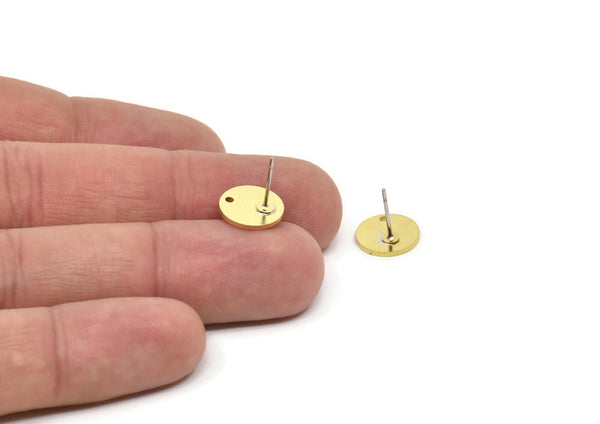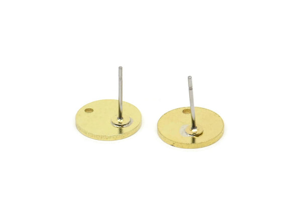 Raw Brass Round Shaped Stud Earrings With 1 Hole