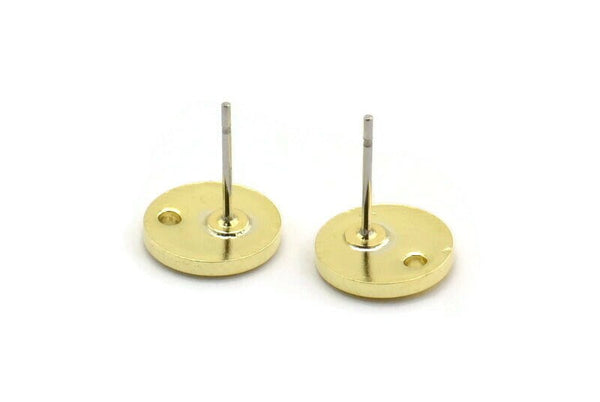 Brass Round Earring, 8 Raw Brass Round Stud Earrings With 1 Hole (10x1.5mm) Y187 A6589
