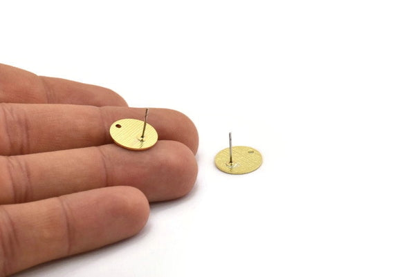Textured Raw Brass Round Stud Earrings With 1 Hole