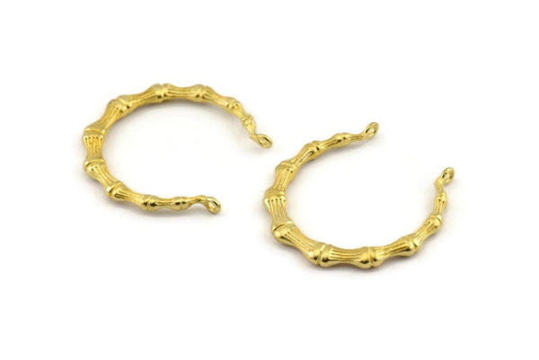 Raw Brass Round Boned Charm Pendants, Earrings, Findings With 2 Loops