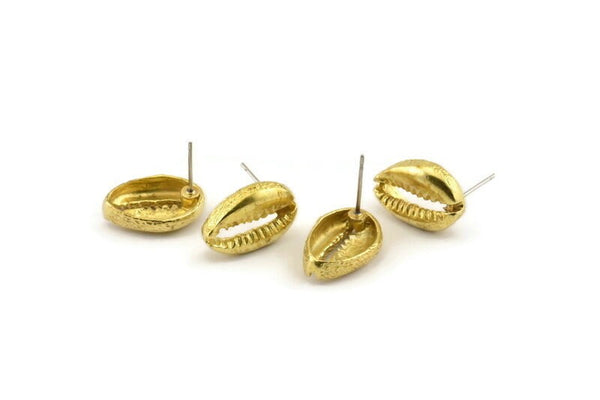 Brass Shell Earring, 2 Raw Brass Cowrie Shell Stud Earrings (12x17mm) N0937