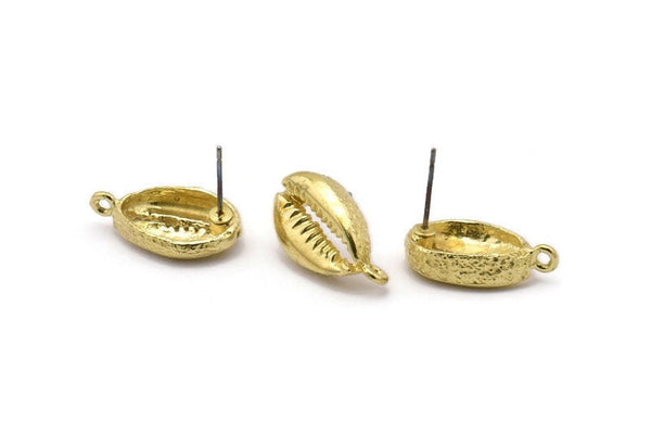 Raw Brass Cowrie Shell Earring with 1 Loop