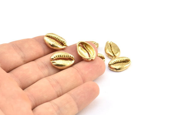 Brass Shell Finding, 4 Raw Brass Cowrie Shell Findings, Pendants, Charms, Earrings, Beads 16-23MM E276