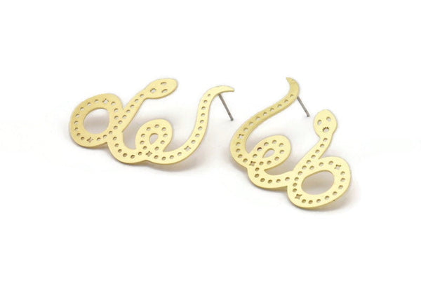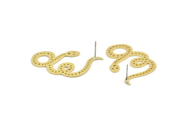 Brass Snake Earring, 4 Raw Brass Snake Stud Earrings (42x27x0.60mm) A3204