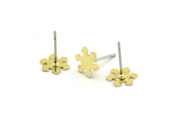 Brass Snowflake Earring, 12 Raw Brass Snowflake Shaped Stud Earrings (8.5x7x0.60mm) A6009
