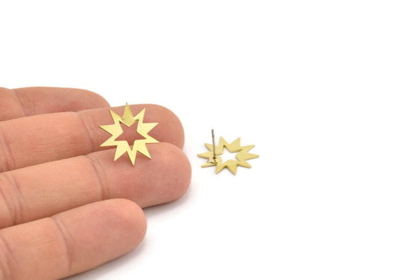 Brass Star Earring, 10 Raw Brass Star Shaped Stud Earrings (18x17x0.60mm) A3378