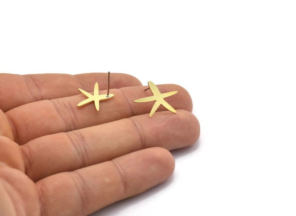 Brass Star Earring, 10 Raw Brass Star Shaped Stud Earrings (19x14x0.80mm) A2655