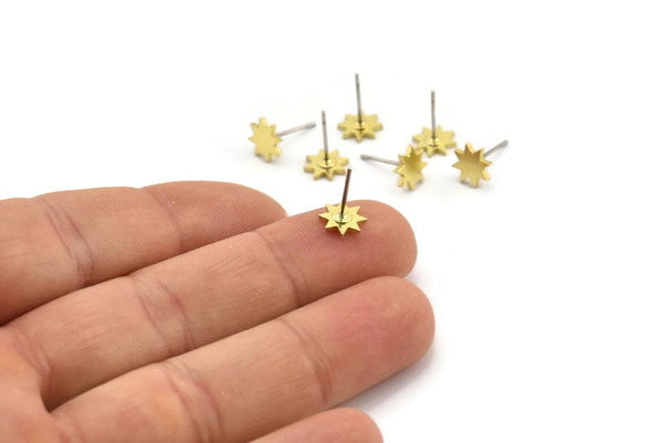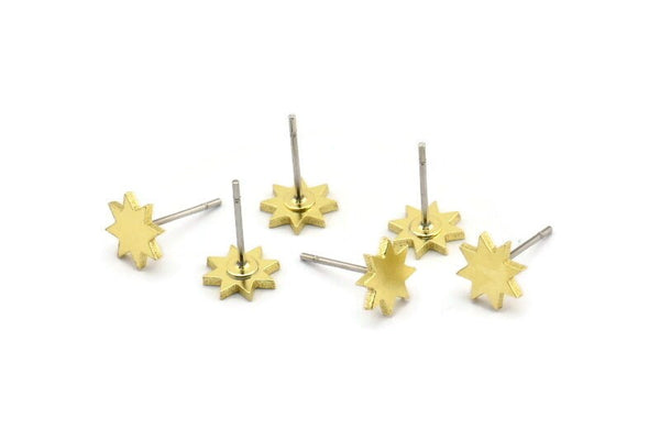 Brass Star Earring, 12 Raw Brass Star Shaped Stud Earrings (7x1mm) A3862