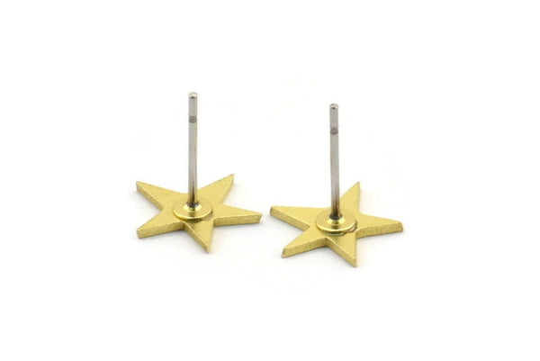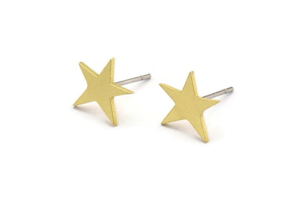 Brass Star Earring, 12 Raw Brass Star Shaped Stud Earrings (9x10x0.80mm) A4005
